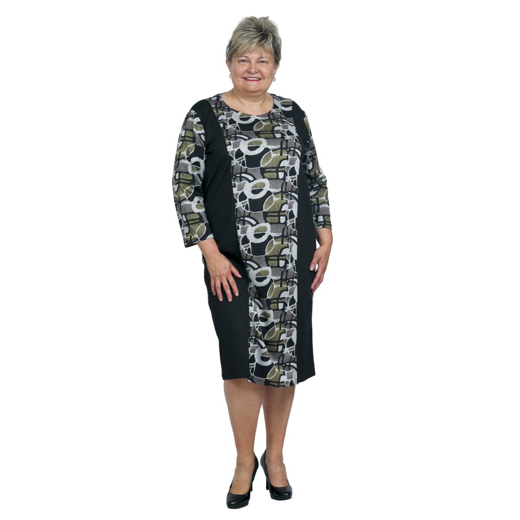 Klasické teplejší pouzdrové šaty rovného střihu, v pase jemně projmuté s výstřihem do kulata, vhodné pro každodenní nošení. Na bocích černé vsuvky, které mají zeštíhlující efekt. Příjemný úpletový materiál, který hezky vytvaruje Vaši postavu.