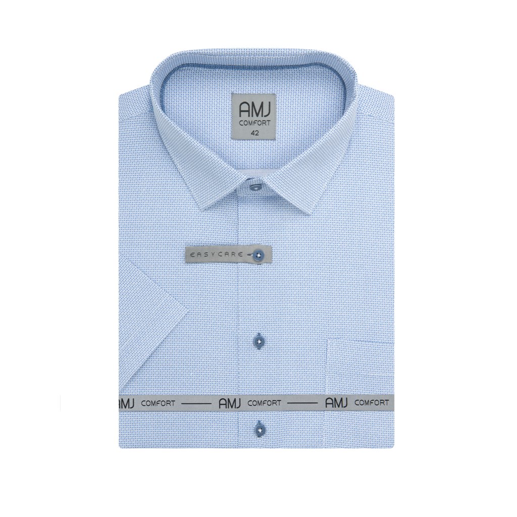 Společenská i volnočasová košile s krátkým rukávem a jednou kapsičkou. Příjemný jemně pružný vzorovaný materiál.