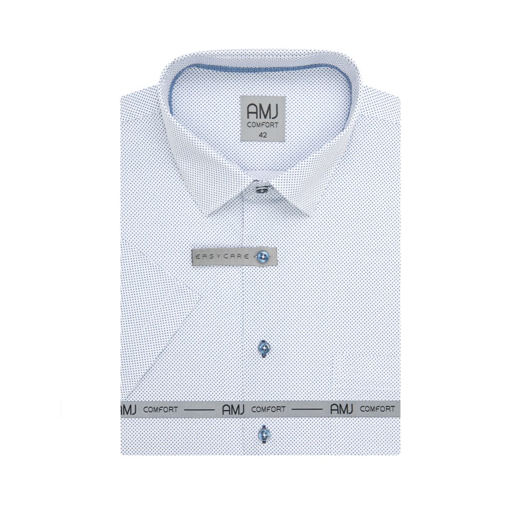 Společenská i volnočasová košile s krátkým rukávem a jednou kapsičkou. Příjemný jemně pružný vzorovaný materiál.