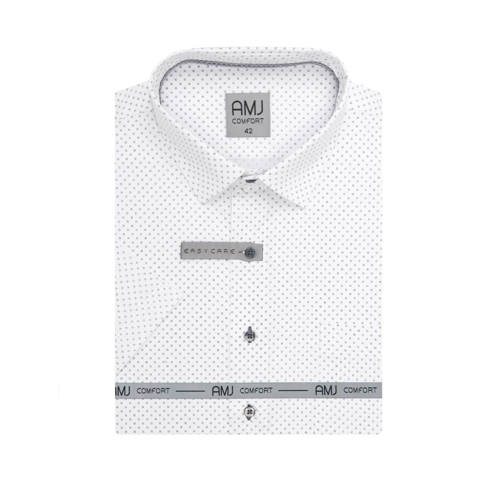 Společenská i volnočasová košile s krátkým rukávem a jednou kapsičkou. Příjemný jemně pružný vzorovaný materiál.