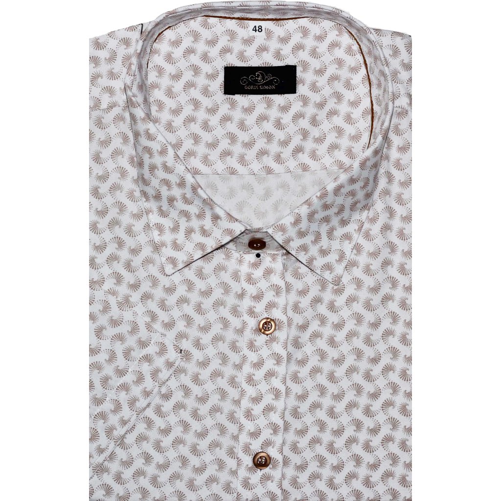 Elegantní košile s krátkým rukávem a jednou kapsičkou. Příjemný bavlněný materiál. Bílá s hnědobéžovým vzorečkem.